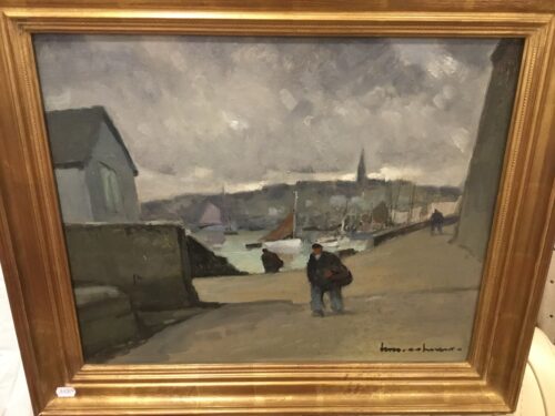 Acrylique années 70 Port de La Rochelle J. Aimeire